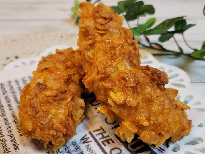 衣にコーンフレークを使うことにより絶妙なサクサク感を出すことが