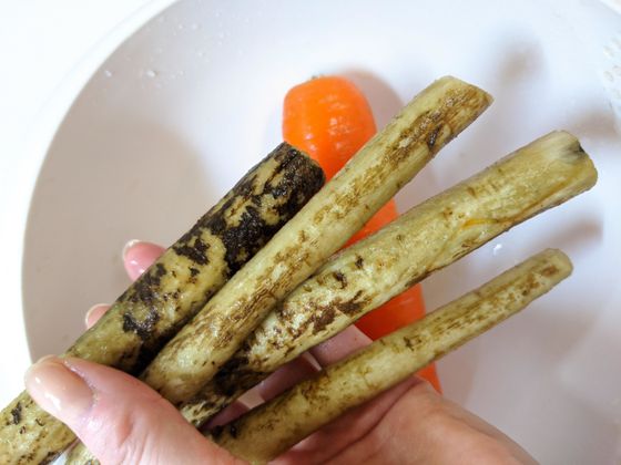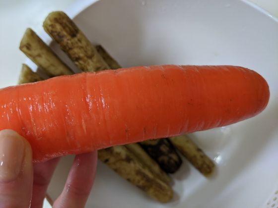ごぼうは上のはすんなりとれましたが、下の太い方は強めにこすりました^^