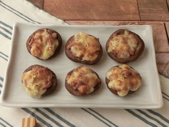 椎茸の納豆味噌チーズ焼き