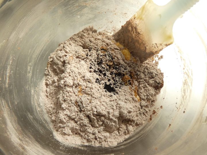 2.ココアパウンドケーキミックス粉とブラックココア小さじ1を混ぜ合わせます。