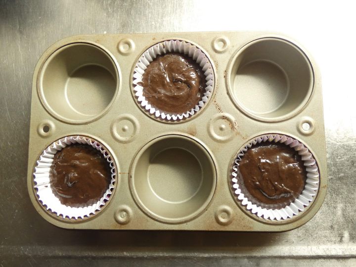 4.180℃のオーブンで20分くらい焼き、竹串を刺して生地が付いてこなければOK。焼き上がったら冷まします。