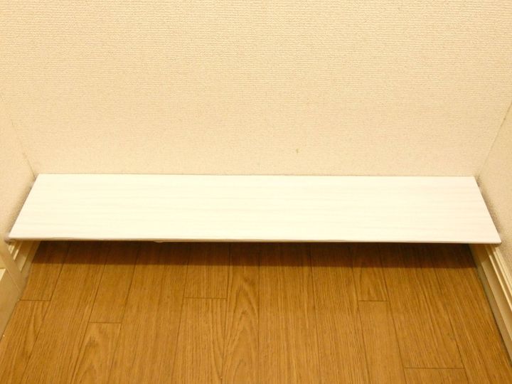 板はそのまま使ってもいいですが、家にリメイクシートが余っていたので白い木目調のリメイクシートを貼ってみました。