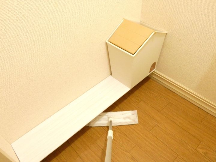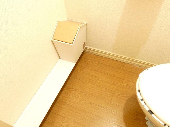 板の上にゴミ箱とトイレットペーパーを置くようにしました。