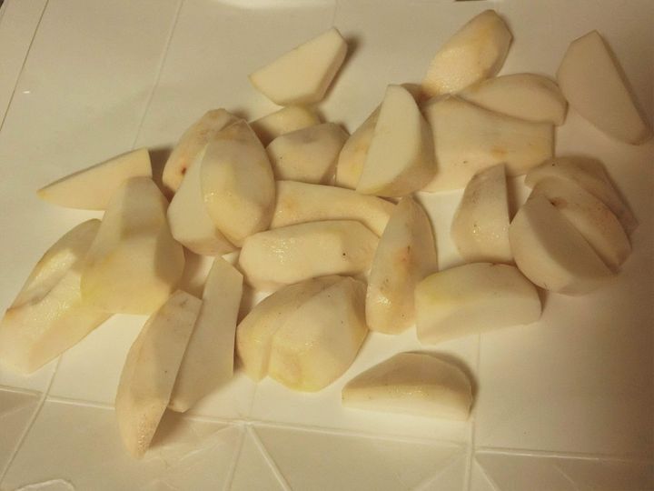 1.里芋は皮をむいてくし形に切ります。耐熱容器に並べ、ふんわりラップをかぶせて電子レンジ600wで3~4分加熱します。