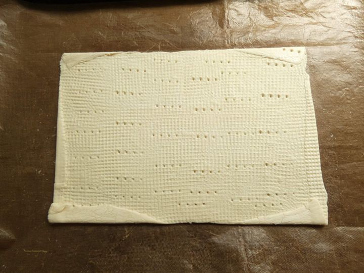 1.冷凍パイシートは少し解凍して、15㎝×22㎝くらいに伸ばし6等分にします。(もう一枚も同じ作業をします)