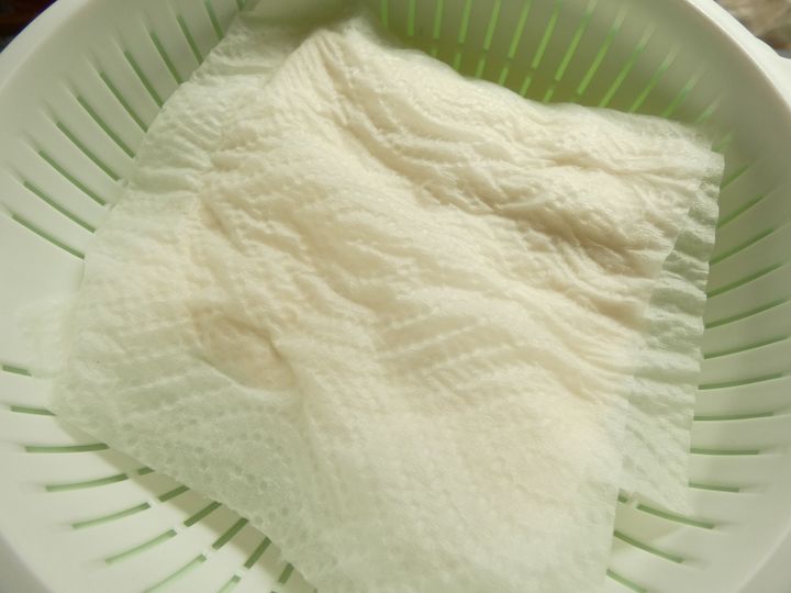 1.豆腐はキッチンペーパーに二重に包んで耐熱皿に乗せます。電子レンジ600wで2分半加熱し水切りします。