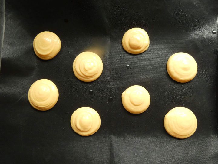 4.天板に生地を絞り出し、霧吹きをまんべんなくかけます。