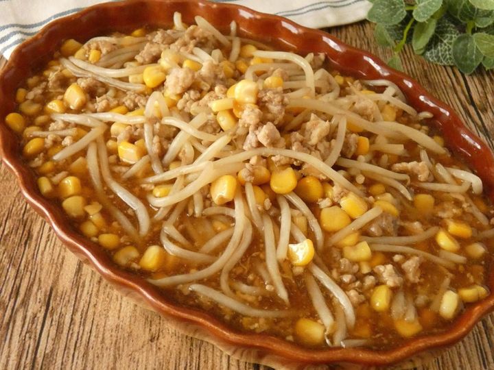 ボリューム満点「たっぷりコーンの麻婆もやし」