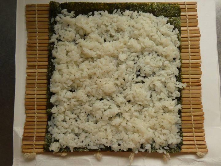 7.まきすをはずし、あまった海苔の方へ回転させたら完成。