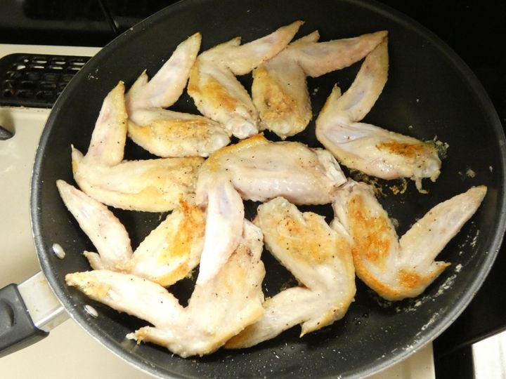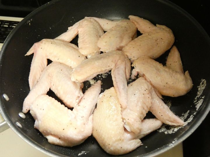 2.フライパンに油をひき、手羽先を並べて焼きます。