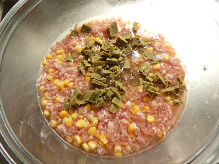 1.コーンはしっかり水気を切っておきます。カレールーは包丁で細かく切ります。