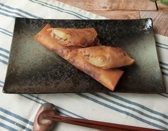 こちらも包丁なし。肉と冷凍ポテトに味付けをして、春巻きの皮で包んであげるだけで完成。