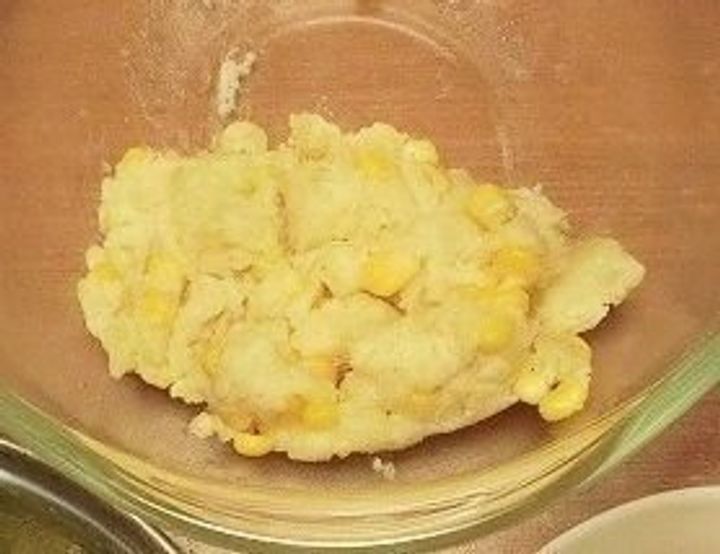 5.カレー粉とコーンを残りのじゃが芋に混ぜ合わせます。