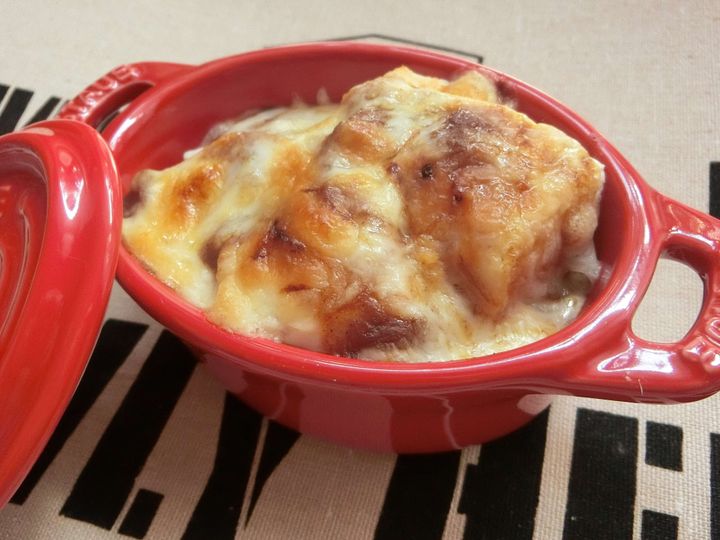 2.レトルトカレーをかけて、チーズを乗せたらトースターで焼き、チーズに焦げ目がついたら完成。
