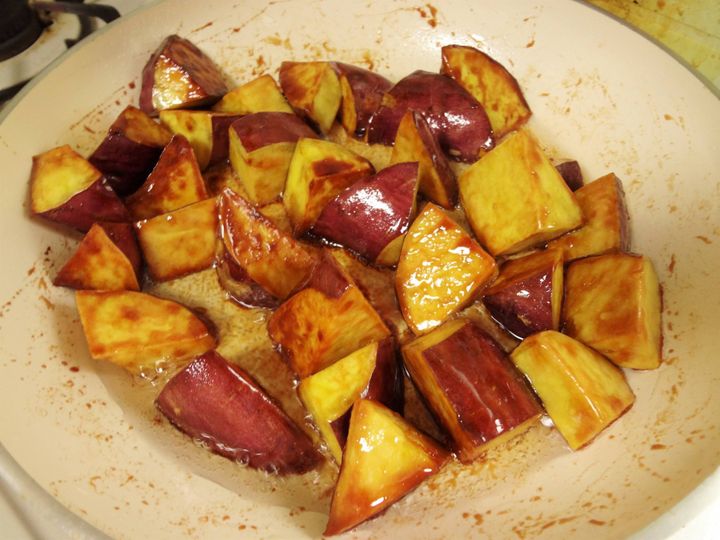 さつま芋の美味しい季節ですね。大好きなので色々なお料理やお菓子を作って楽しんでいます。その中でも大学芋は家族みんな大好きなので毎年作るのですが、油で揚げてタレを絡めて…とちょっと面倒なんです。そこで、揚げ焼きにしてみたらとても簡単!!フライパン1つでホクホク大学芋が作れたので紹介したいと思います。