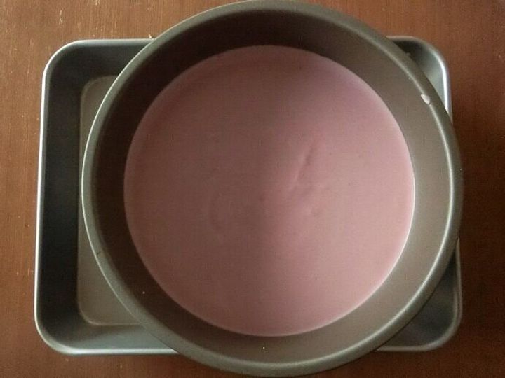 7.1のBのゼラチンを電子レンジ600wで5秒位加熱し、4で取り分けたラズベリー液に混ぜ合わせます。
