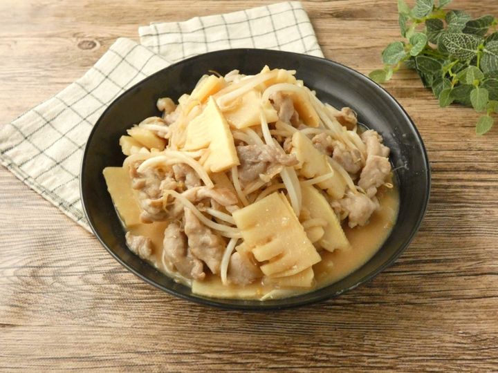 おかわりが止まらない!!豚こま肉とタケノコのボリュームたっぷり味噌炒め