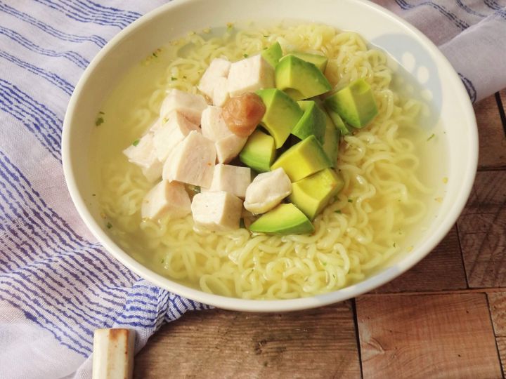 市販のサラダチキンやアボカドをトッピングしたり、ネギやコーン、トマトなどお好みの具でアレンジが楽しめます。シソや梅干しをちょい足ししたり、キムチやわさびでピリ辛にするのもオススメ。塩ラーメンでさっぱり冷やしラーメンにしましたが、しょう油や味噌味でも楽しめるので、ぜひお試しください。