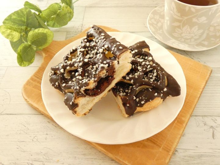 食べてみるとパイは層がしっかりしていて、サックサク。一口食べるごとにパイがポロッと落ちてしまうほどのサクサク食感です。表面のチョコはパリッとしていて、中のチョコは少しねっとりしていて濃厚。チョコレートをしっかり味わえる濃厚さですがほどよい甘さなので、飽きずに食べられます。