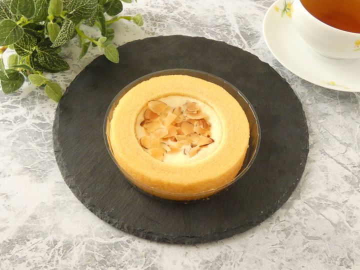 2㎝ほどの厚さのバウム中央にチーズケーキがたっぷり入っていて、上にはスライスアーモンドがちりばめられています。