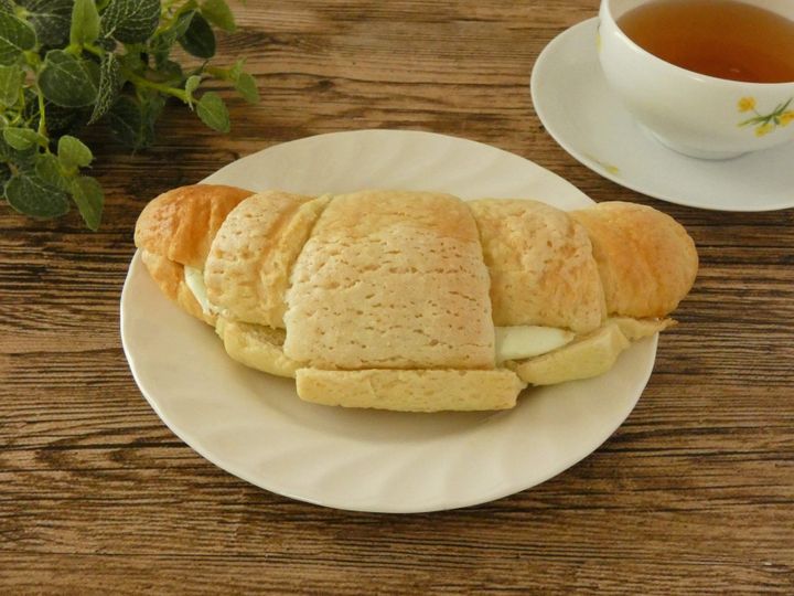 ファミマベーカリー新発売「スイートクロワッサン(メロンホイップ)」は138円。