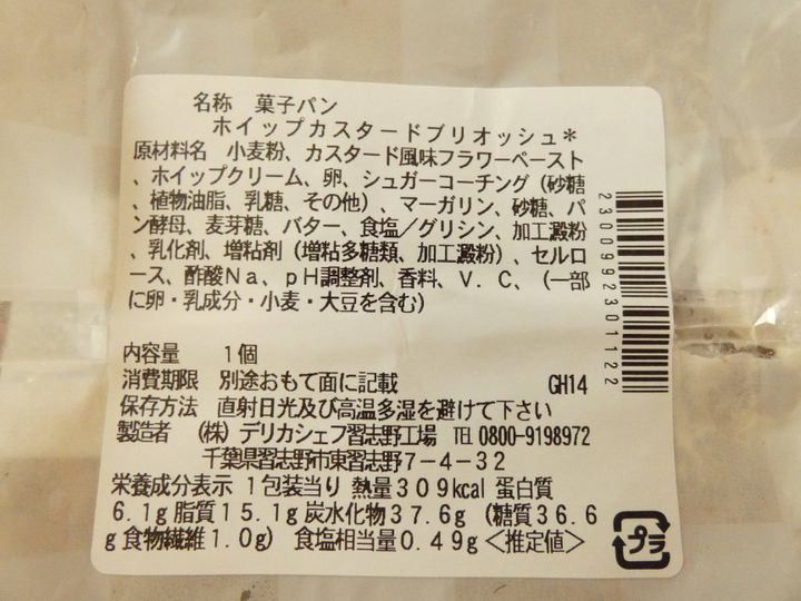 栄養成分表示を見ると1個のエネルギーは309kcal。