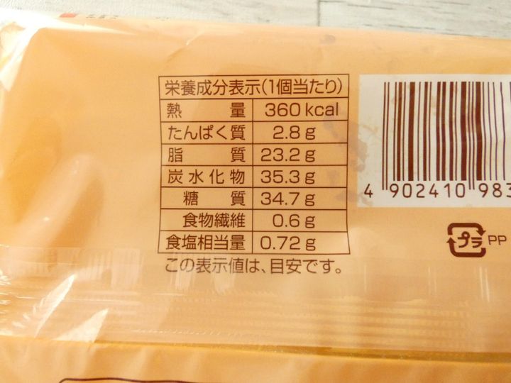 栄養成分表示を見ると1個のエネルギーは360kcalです。