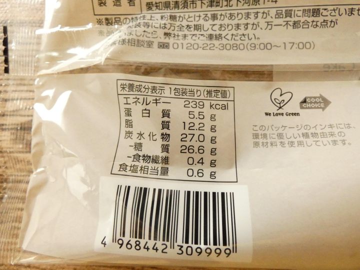 栄養成分表示を見ると1個のエネルギーは239kcalです。