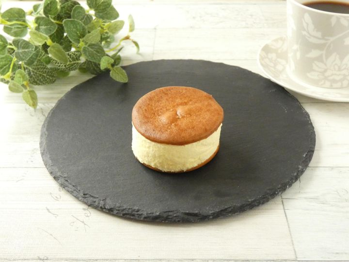 手のひらサイズのスイーツで、こんがりと焼いたビスケットに瀬戸内産レモンのピールが入ったレアチーズクリームがたっぷり入っています。