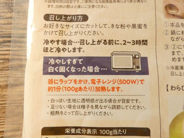 常温保存しておけるので便利で、食べたいときは2~3時間前に冷やせばOK。冷やしすぎて固くなってしまった場合は器に入れてラップをし、電子レンジ500wで1分ほど加熱するともっちりします。