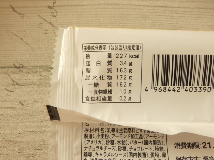 栄養成分表示を見ると1個のエネルギーは227kcalです。