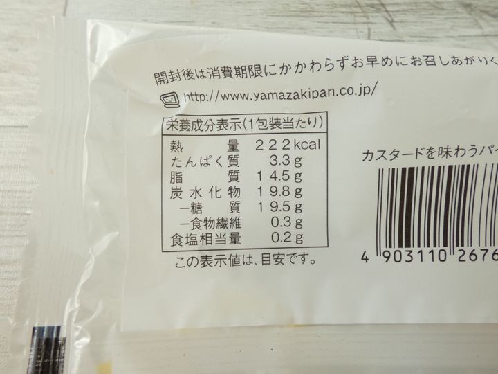 栄養成分表示を見ると1個のエネルギーは222kcal。