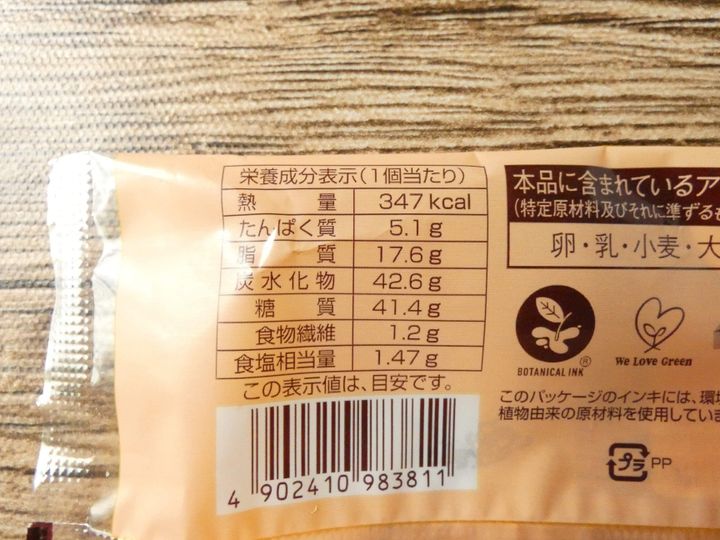 栄養成分表示を見ると1個のエネルギーは347kcal。シンプルなビスケットですが、カロリーは少し高めです。
