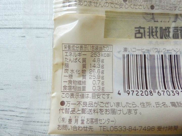栄養成分表示を見ると1個のエネルギーは253kcal。