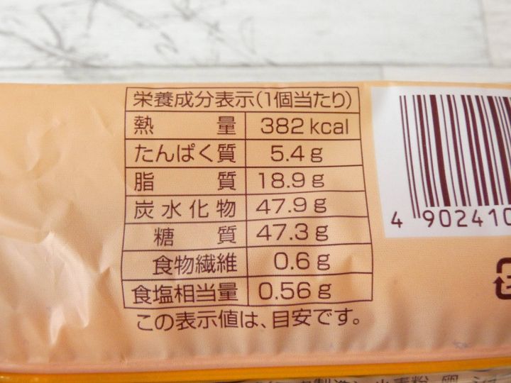 栄養成分表示を見ると1個のエネルギーは382kcal。