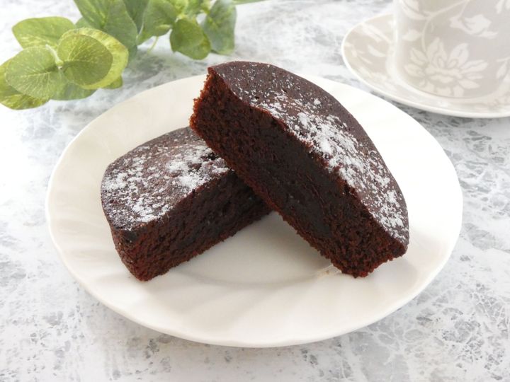 ガトーショコラ生地の中にはとろ~りチョコクリームが入っていて、上には粉砂糖がかかっています。
