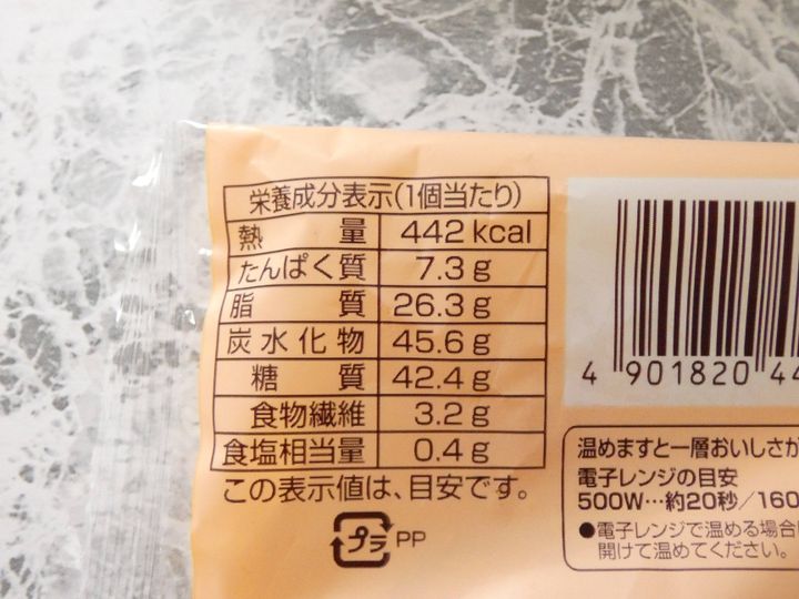 栄養成分表示を見ると1個のエネルギーは442kcal。