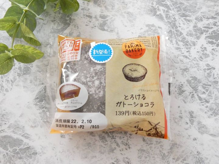 ファミリーマート新発売「とろけるガトーショコラ」は150円。あまり大きくはないですが、持つとずっしり重くてビックリしました。
