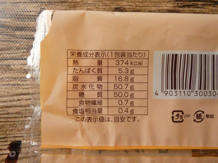 栄養成分表示を見ると1個のエネルギーは374kcal。