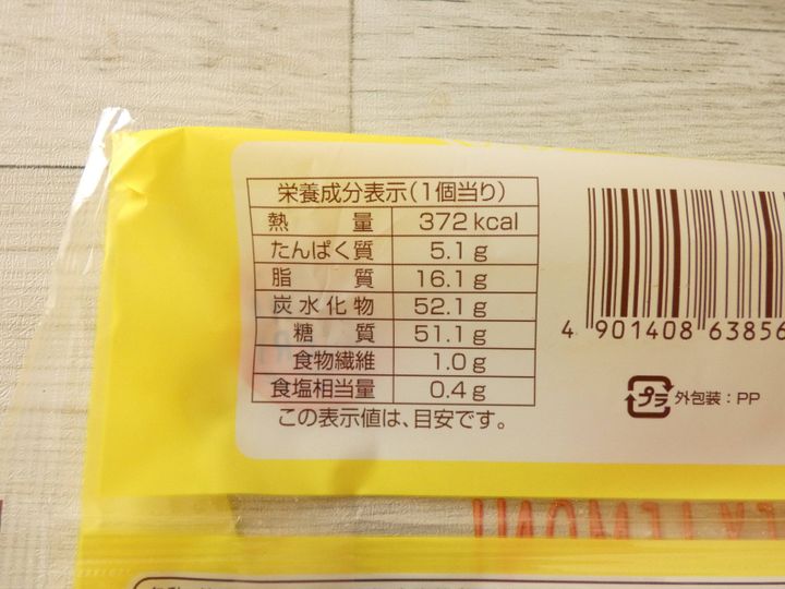 栄養成分表示を見ると1個のエネルギーは372kcal。