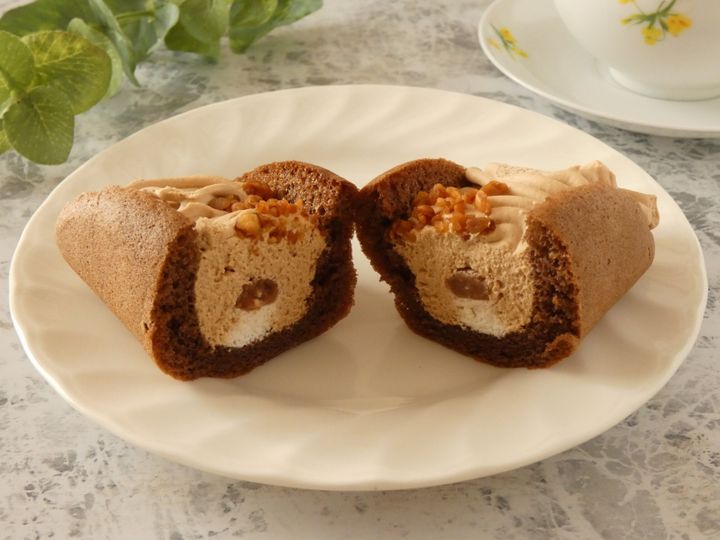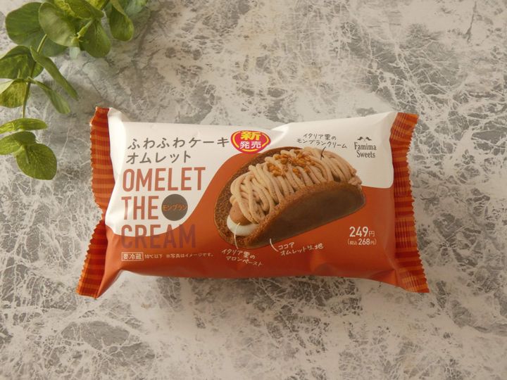 ファミリーマート新発売「ふわふわケーキオムレット モンブラン」は268円。