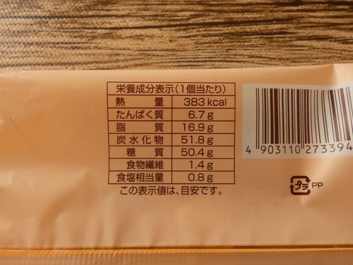 栄養成分表示を見ると1個のエネルギーは383kcal。