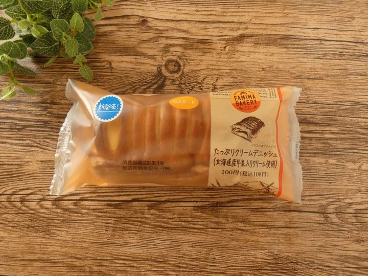 ファミリーマート新発売「たっぷりクリームデニッシュ(北海道産牛乳入りクリーム使用)」は108円。この大きさでこのお値段はコスパ抜群です!