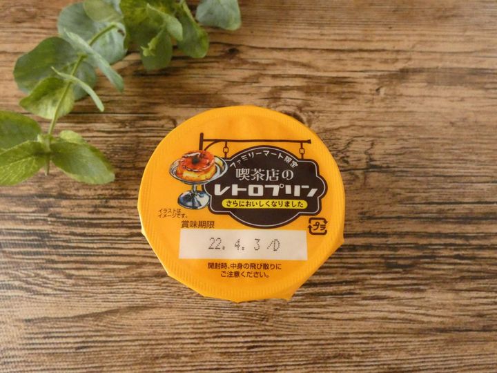 レトロ風デザインが目を引く黄色のパッケージで、しっかりとしたかためのプリンの下にはカラメルソースが入っています。