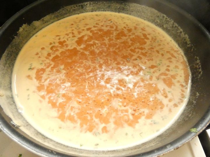 出来上がりはソースが多め。ホワイトソースが良く絡んで、チーズの香りが濃厚です。