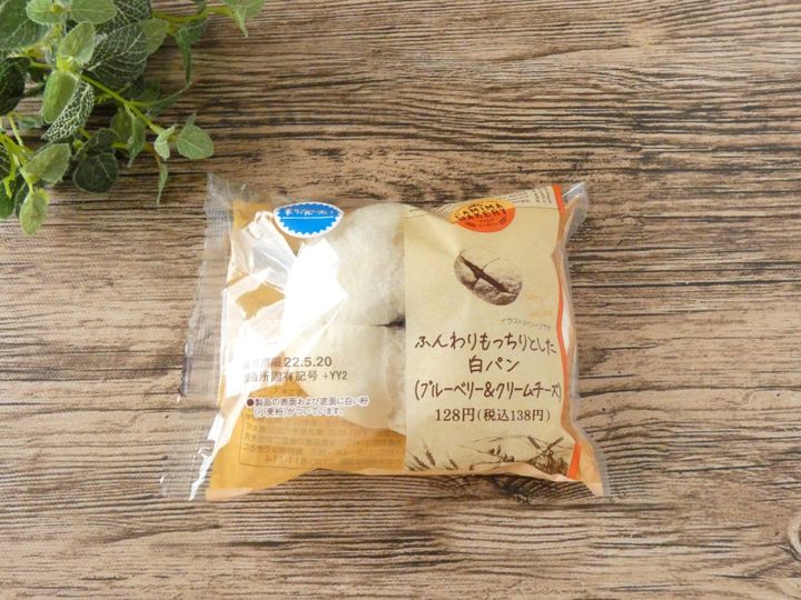 ファミリーマート新発売「ふんわりもっちりとした白パン(ブルーベリー&クリームチーズ)」は138円。