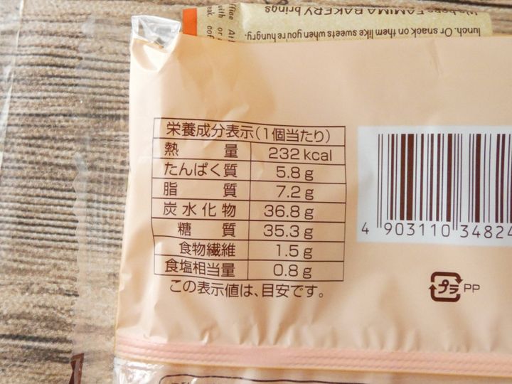 栄養成分表示を見ると1個のエネルギーは232kcal。