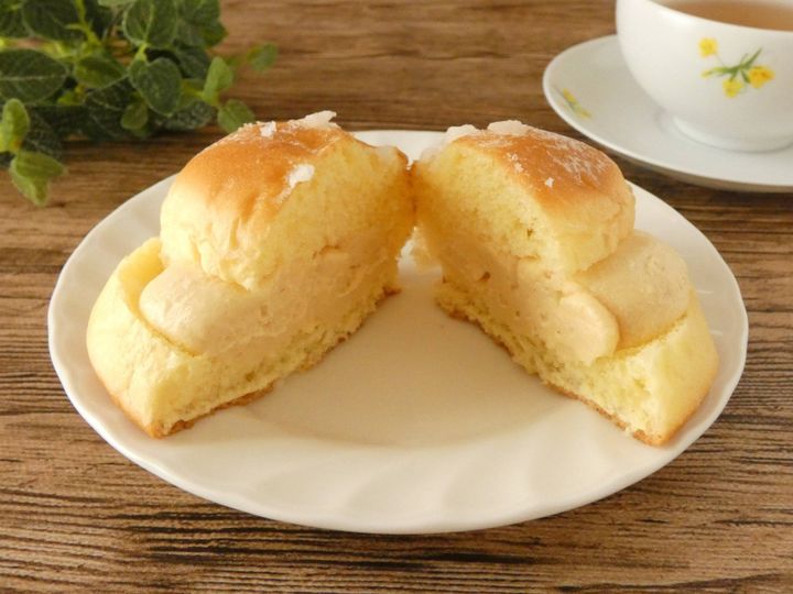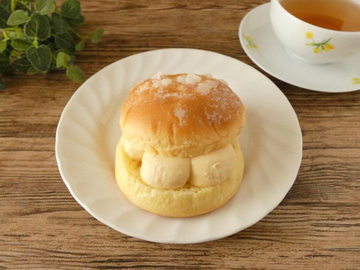 ふんわりとしたブリオッシュ生地に、カスタードクリームがたっぷり入っています。ブリオッシュ生地の表面はこんがりと香ばしく、中はふわふわ食感。オレンジの爽やかな香りが広がります。