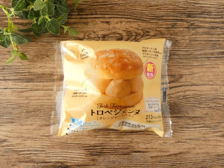 今回はファミリーマート新発売「トロペジェンヌ(オレンジピール入り)」です。南仏生まれの定番スイーツ「トロペジェンヌ」の新フレーバーを楽しみにしていました。