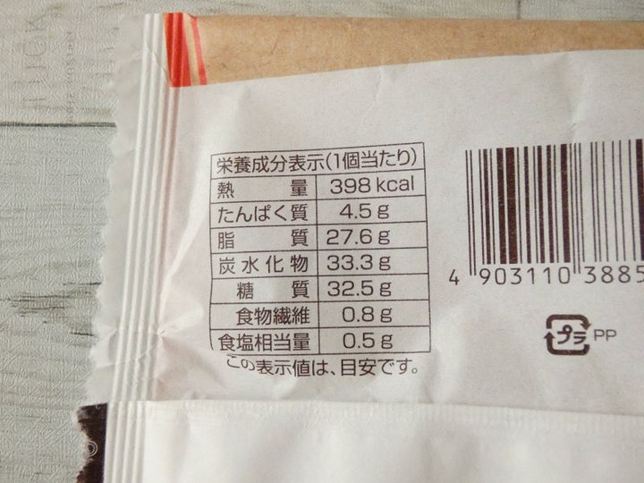 栄養成分表示を見ると1個のエネルギーは398kcal。